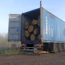 Kontener pękał pod naporem dębu. Polizei przerwało transport
